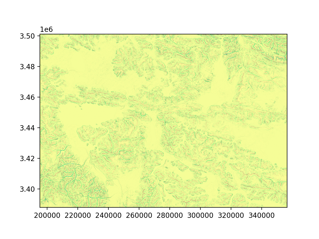 curvature([ctype, meanfilt])curvature returns the second numerical derivative (curvature) of a digital elevation model.