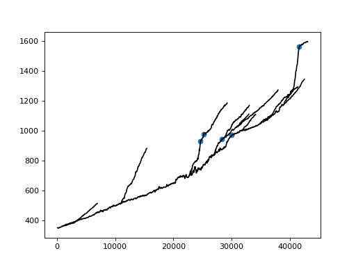 >>> import topotoolbox >>> dem = topotoolbox.load_dem('bigtujunga') >>> fd = topotoolbox.FlowObject(dem) >>> s = topotoolbox.StreamObject(fd,threshold=1000) >>> sc = s.clean() >>> assert sc.stream.shape <= s.stream.shape